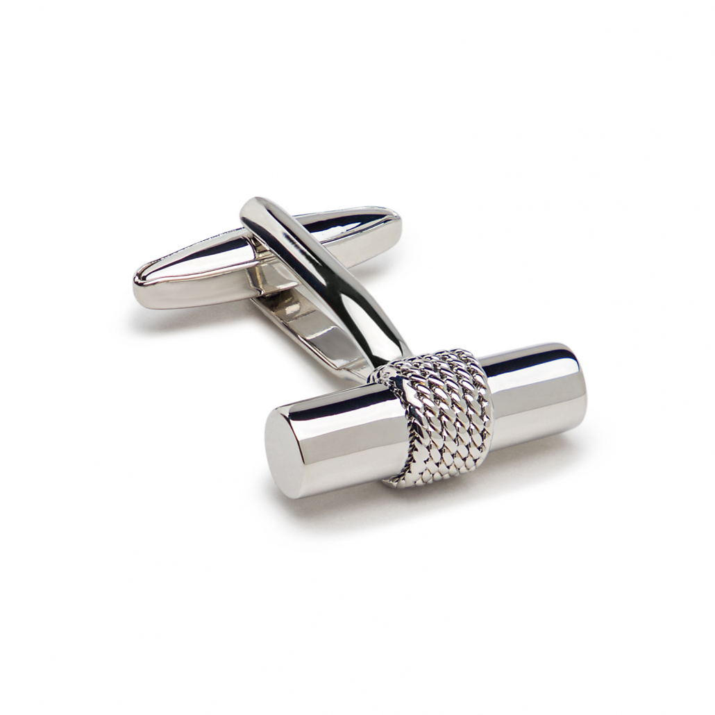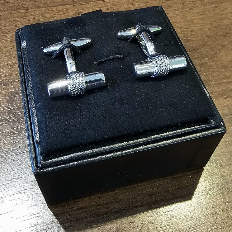 Versilberte Manschettenknöpfe Rope Tube in Barrenform mit Seil-Detail in Geschenkbox. Designed in England.